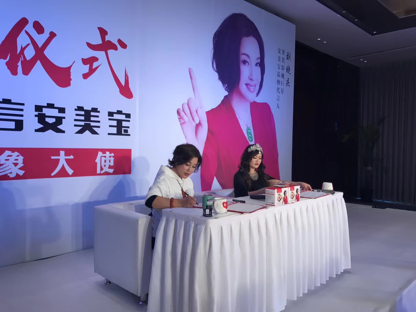 儀式當天,安美寶特別安排禮儀隊伍迎接貴賓劉曉慶。而劉曉慶也以一身簡潔時尚的白色套裝登場,光彩照人,魅力四射!安美寶創(chuàng)始人也上臺表達對曉慶女神的仰慕,以及品牌的沉淀。